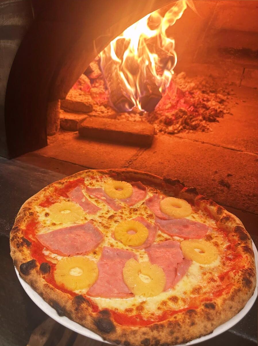 Tomate, mozzarella, origan, jambon cuit, ananas